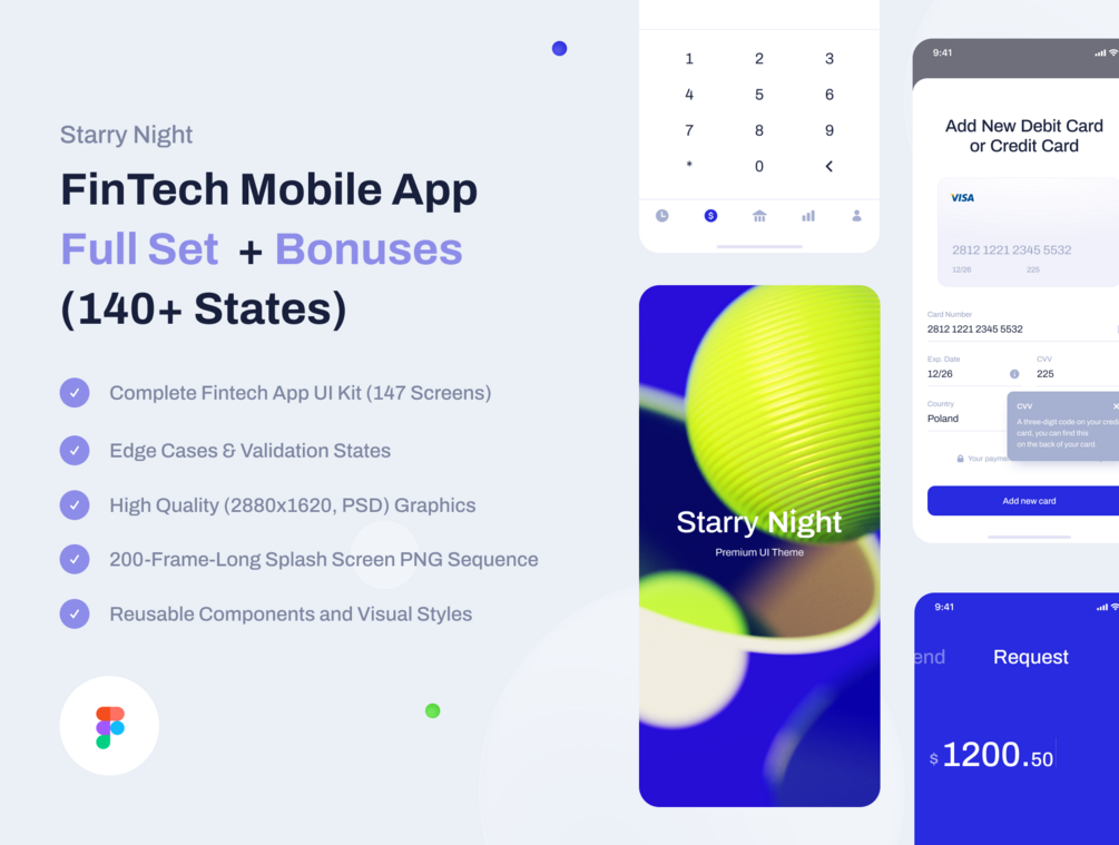 FinTech Mobile App: Full UI Kit + Bonuses (Figma)
